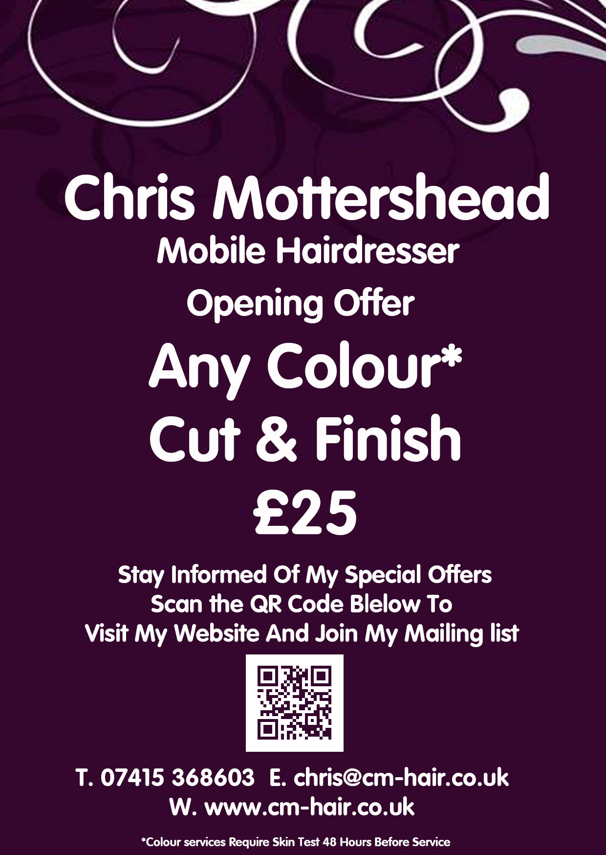 *Appointments for colour treatments require a skin test 48 hours prior to treatment.